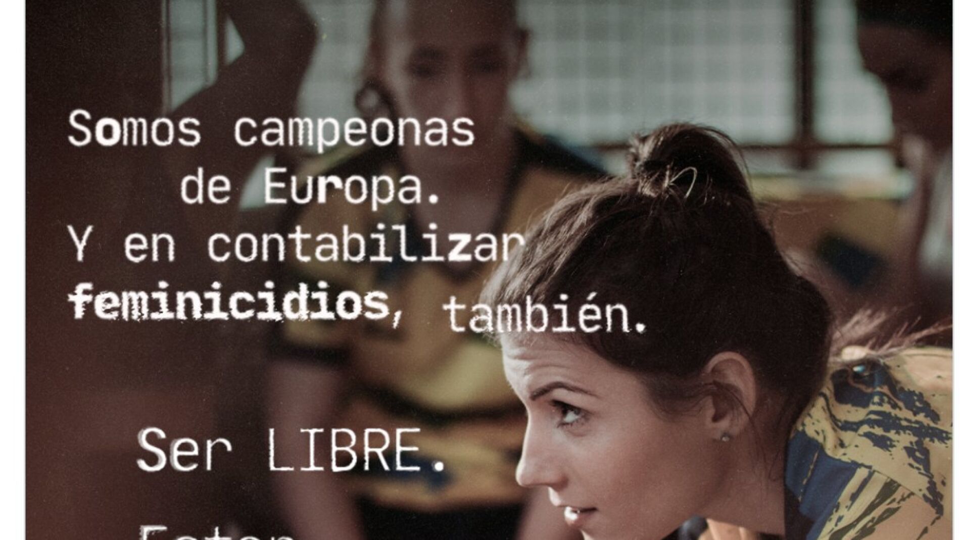 "Somos campeonas de Europa. Y en contabilizar feminicidios, también. Ser LIBRE. Estar VIVA. ESPAÑA"