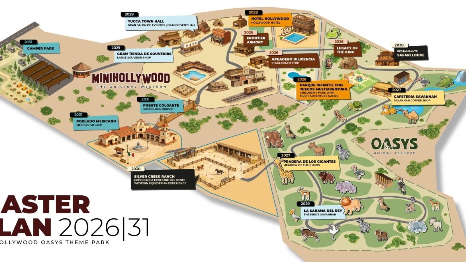 Las actuaciones previstas para 2030 contemplan la apertura del restaurante "Safari Lodge" y la creación del club hípico "Silver Creek Ranch".