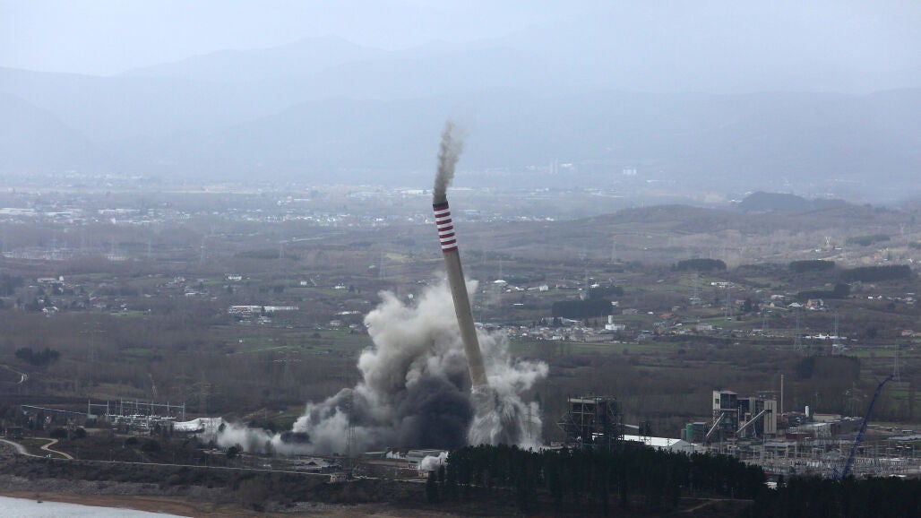 El Bierzo se despide de su icónica imagen tras el derribo de las chimeneas de la Central Térmica de Compostilla II, símbolo del pasado minero e industrial
