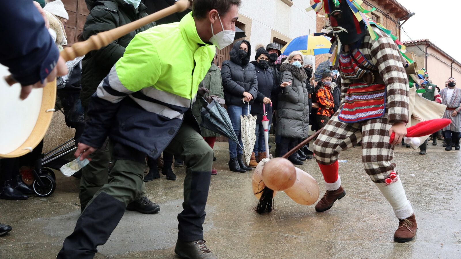 Y como elemento común el ámbito espacial de celebración de las mascaradas en cada localidad, son las plazas y las calles a través de las que se realizan los recorridos y representaciones, dando lugar en algunos casos a la entrada de los personajes en los templos parroquiales o ermitas.