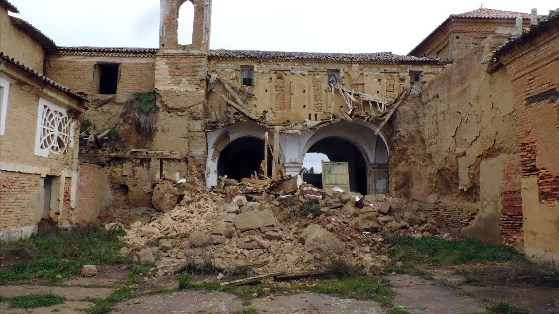 Casi 400 días después de que se derrumbara la nave lateral de la iglesia del convento de San Bernardino de Siena de Cuenca de Campos, el pasado sábado se ha desplomado la espadaña, en lo que la Fundación Rehabiltiar Tierra de Campos considera un paso más “en la lenta desaparición de este monumento”.