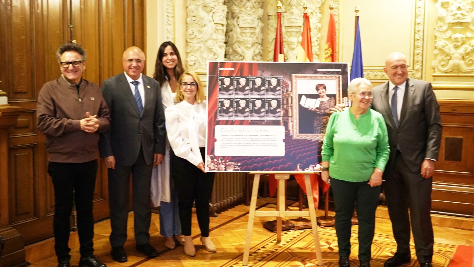 Al acto de presentación, que ha tenido lugar en el Ayuntamiento de Valladolid, asistían el alcalde de Valladolid, Jesús Julio Carnero, el director de la Seminci, José Luis Cienfuegos, Esperanza Varona, prima de Concha Velasco y la directora de Filatelia y Relaciones Institucionales de Correos, Nuria Lera. Al finalizar el encuentro se ha llevado a cabo el tradicional matasellado de honor.