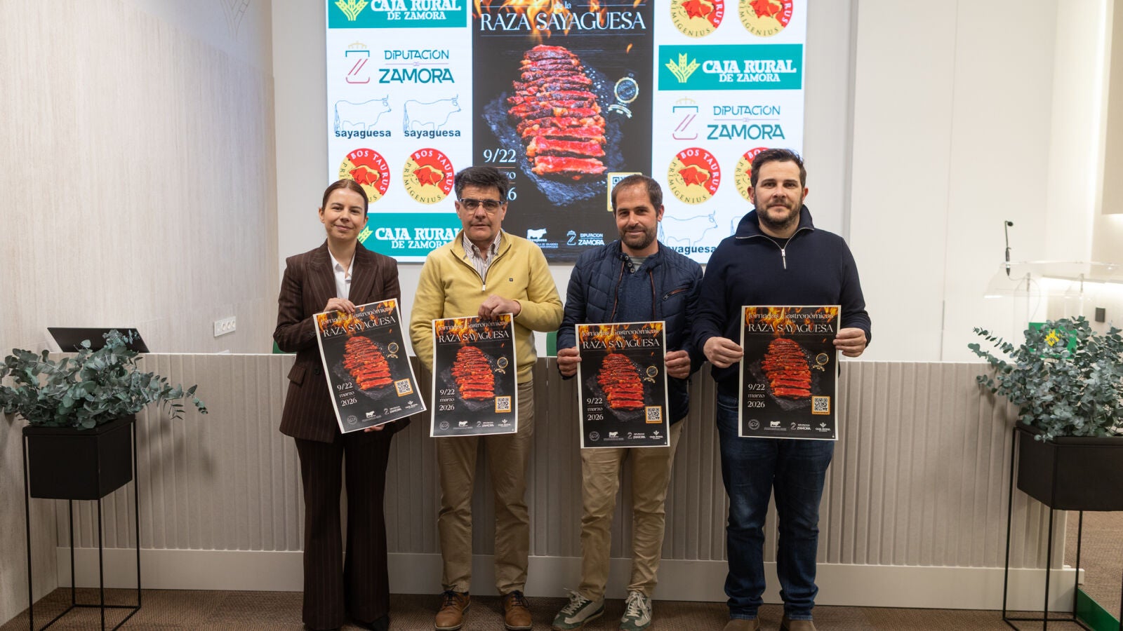 Laura Huertos hizo estas declaraciones en la sede central de Caja Rural de Zamora, durante la presentación de las III Jornadas Gastronómicas de la Raza Sayaguesa. El acto contó también con la participación del vicepresidente primero de la Diputación, Víctor López, y del presidente de la Asociación Española de Criadores de Ganado Bovino Selecto de Raza Sayaguesa, Antonio Domínguez.
