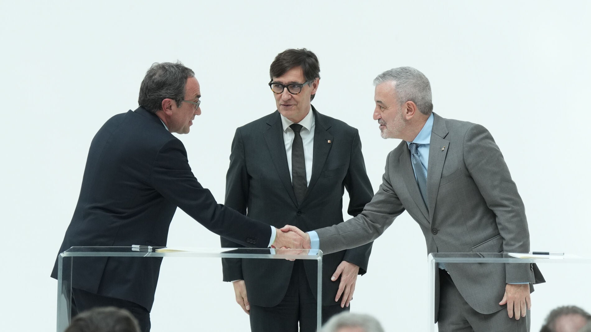 El presidente de la Generalitat, Salvador Illa, el presidente del Parlament, Josep Rull, y el alcalde de Barcelona, Jaume Collboni, han firmado esta mañana el protocolo de "ampliación y mejora" de las dependencias del Parlament de Cataluña. El acuerdo prevé un aumento del espacio de hasta 8.000 metros cuadrados, con la construcción de un nuevo edificio en las actuales caballerizas de la Guardia Urbana.