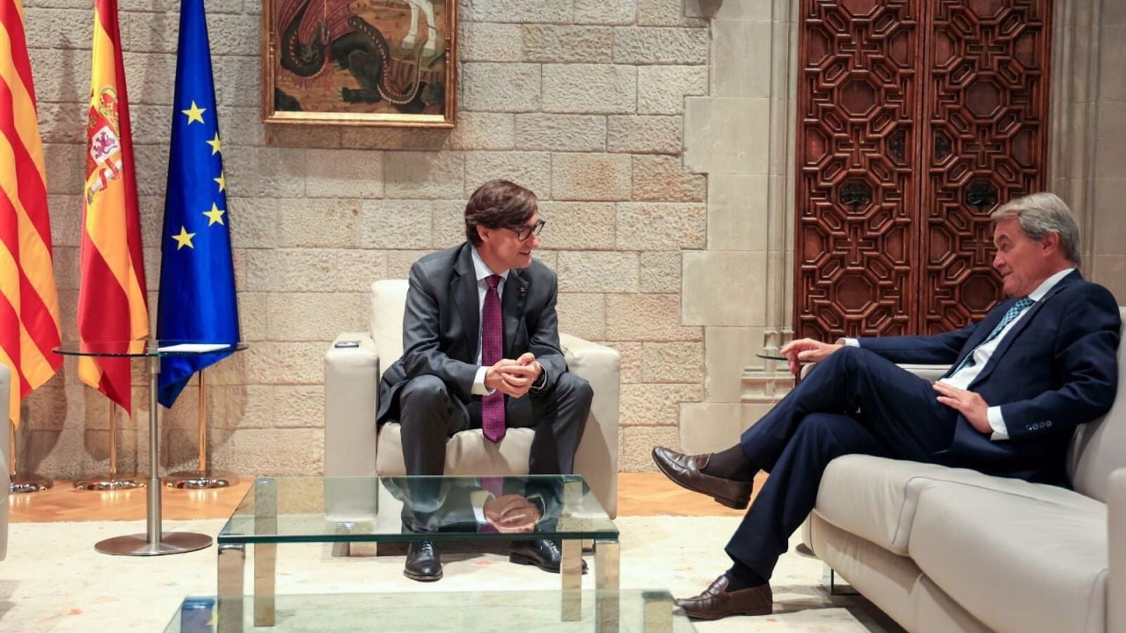 El presidente de la Generalitat se ha visto esta mañana en Palau con Mas tras hacer lo propio en los últimos días con Pujol y Montilla. La presidenta de Junts, Laura Borràs, asegura que "no quiere" entrevistarse con el líder de los posconvergentes, fugado en Bélgica