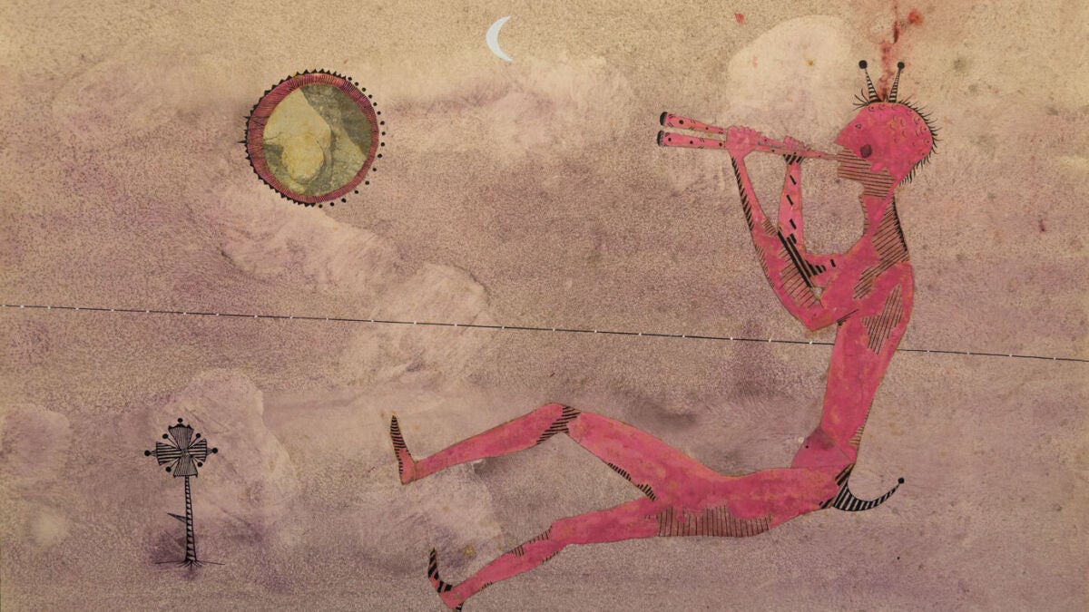 De Joan Ponç se presentan piezas de 1960, un año particularmente significativo en su trayectoria. Destacan obras de la «Suite Presència» –realizadas en gouache, tinta y lápiz sobre papel– y un Sin título de tinta y gouache sobre papel (50 x 70 cm). Son trabajos que condensan ese universo personalísimo del artista, habitado por símbolos, presencias oníricas y una figuración que siempre parece estar a punto de disolverse en lo arquetípico. Frente a ellos, los dibujos de Sandra Vásquez de la Horra despliegan su característico lenguaje íntimo y ritual. Entre las obras expuestas figuran «Aymáras», «La Hipnotizada» y «Los Caminos de Ellegua» . En su caso, el dibujo atraviesa lo psíquico, lo espiritual y lo corporal, creando imágenes que oscilan constantemente entre lo personal y lo universal, entre el rito privado y la resonancia colectiva.