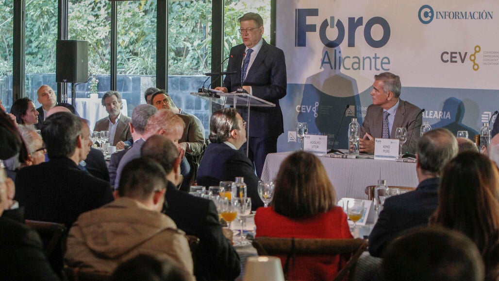 En una conferencia con el título "La Comunitat avanza", del Foro Alicante, organizado por el Club Información, el president de la Generalitat ha destacado que los platós del complejo industrial audiovisual de Alicante han pasado en los últimos años "del cierre a funcionar".