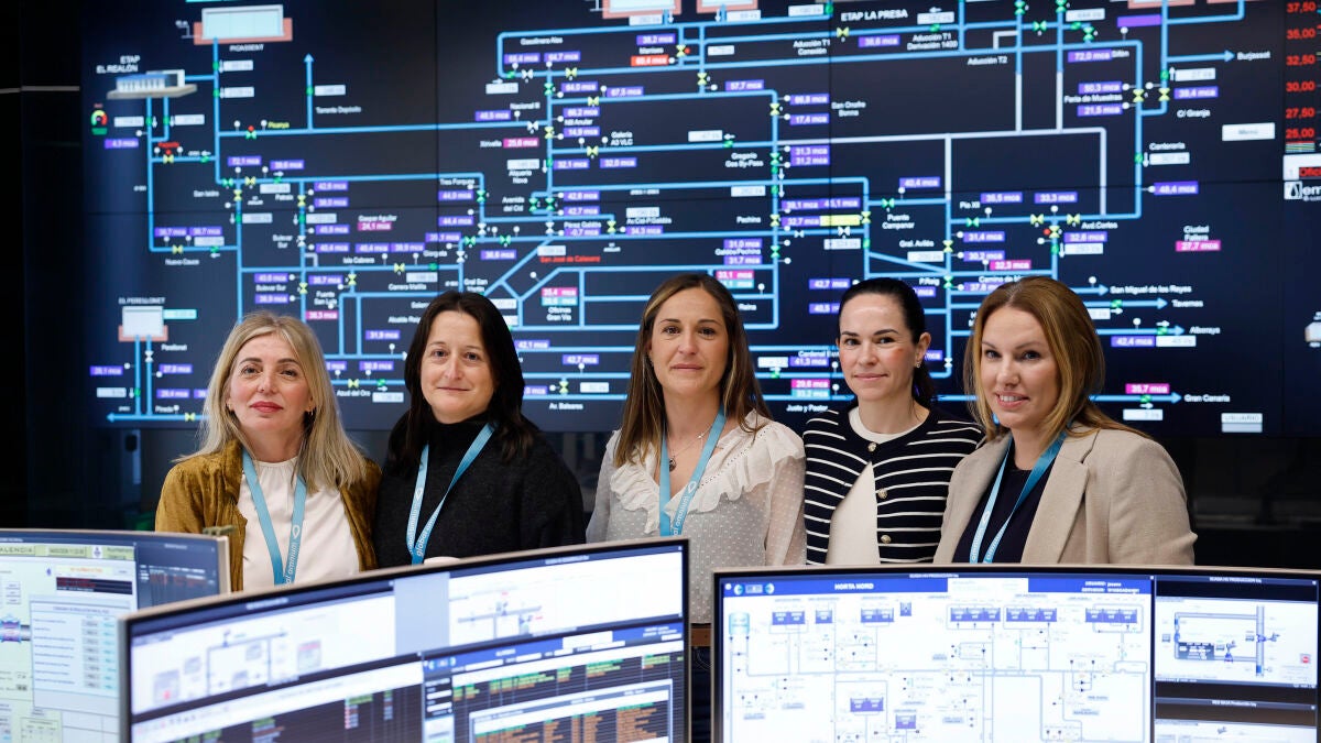 En este Día Internacional de la Mujer, estas cinco trabajadoras de la empresa Global Omnium reflejan el peso femenino en su plantilla y, al igual que hacen con dedicación y entrega el resto de días del año, seguirán vigilando el mantenimiento, el rendimiento de la red, la atención de los avisos y las reparaciones que puedan surgir para que todo transcurra con normalidad.