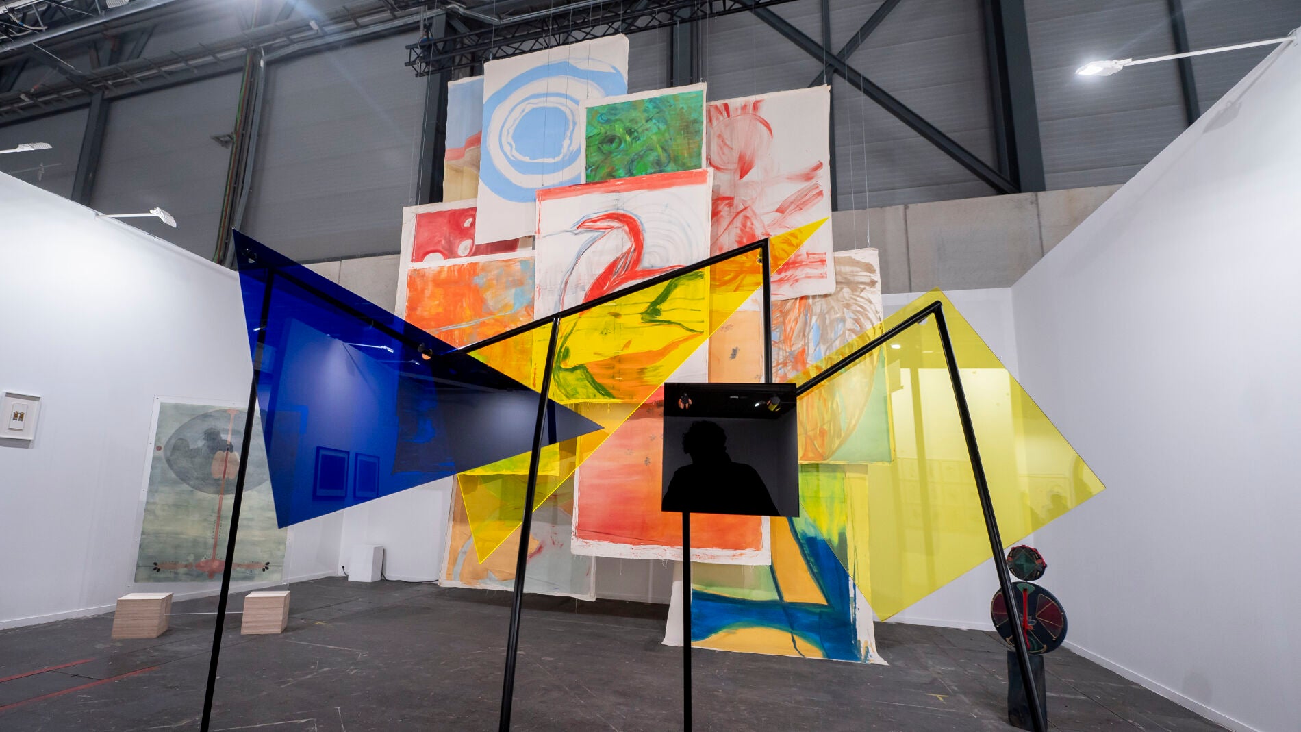 En el espacio conviven las formas geométricas, traslúcidas y coloridas de la argentina Amalia Pica junto a las telas de sus paisanas Claudia Alarcón y el colectivo Silät
