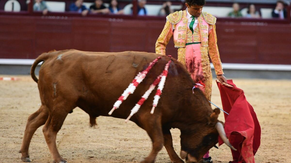 Pedro Gómez lo intentó con un primero pegajoso y dejó buena voluntad y contundencia con la espada. A la puerta de toriles se fue con el cuarto y a la larga inicial le siguieron otras. Puso banderillas también, la última en el tercio con un ajustado quiebro. Colocó la cara muy abajo el novillo y empujó en la muleta de Gómez.