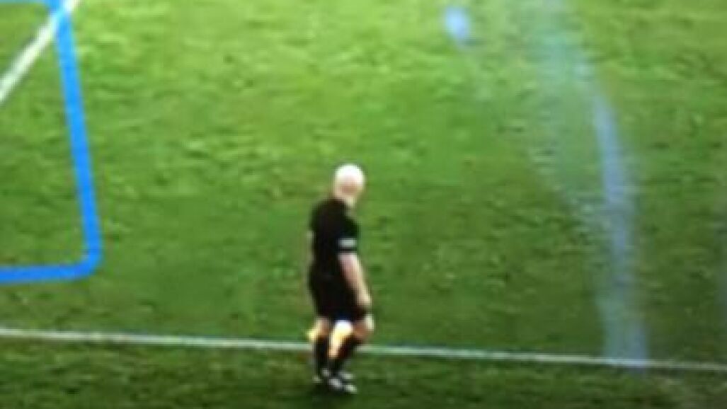 Un comentarista pide perdón porque la cámara automática confunde el balón con la calva del juez de línea