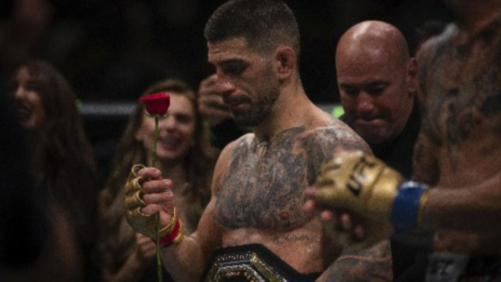 Cuando el peleador español abandonó el octógono se dirigió hasta la posición donde se encontraba el antiguo monarca español y, sin dejar que se levantara para felicitarlo, se agachó para darle un beso en la cabeza. Es probable que el Rey Juan Carlos no se haya visto nunca en una situación similar.