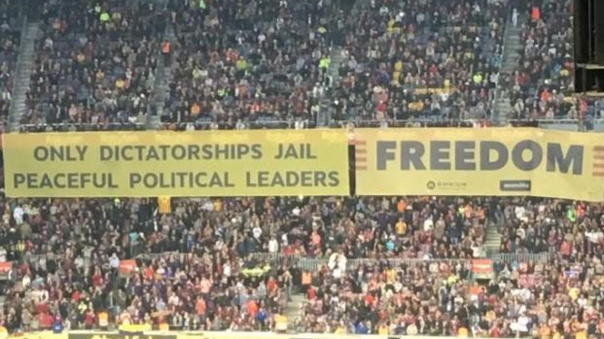 En las gradas del estadio azulgrana suelen ser habituales las pancartas reivindicativas. El 1-O de 2017 se jugó a puerta cerrada un Barça-Las Palmas en protesta por lo sucedido en el falso referendum