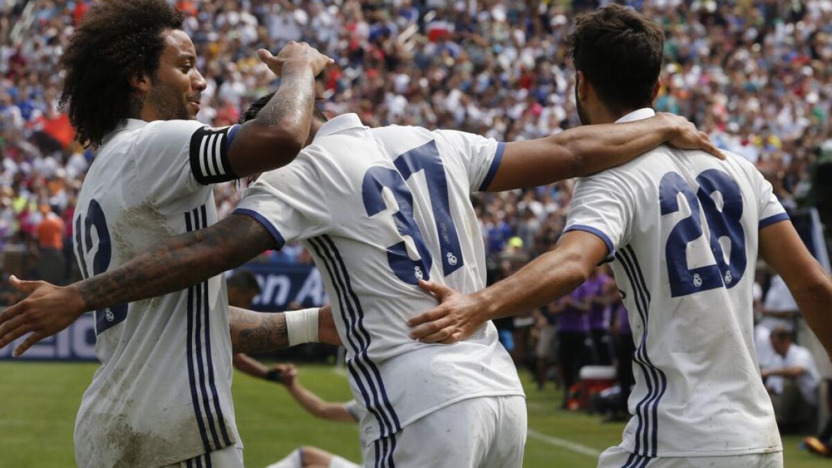 El Real Madrid firmó su primera victoria de la pretemporada, por 3-2 ante el Chelsea, en la 'International Champions Cup', en el Michigan Stadium de Ann Arbor.