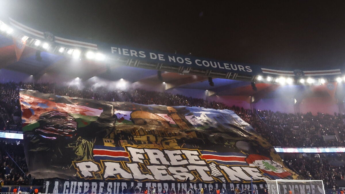 Lío monumental en Francia por el polémico tifo pro-palestino del PSG en el encuentro ante Atlético