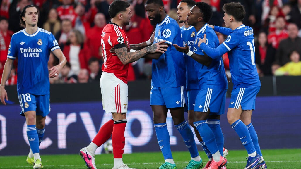 Por un lado, Vinicius sufrió de nuevo un episodio racista con el futbolista del Benfica, Gianluca Prestianni. Tras el golazo del brasileño, la grada cargó contra Vini y el jugador, cuando el balón estaba a punto de rodar con el saque de centro, se tapó la boca con la camiseta para decirle algo. A partir de ahí, Vinicius se dirigió rápidamente al colegiado para informarle de lo que había sucedido: un presunto insulto racista que nunca se podrá confirmar pero que, por la reacción de ambos jugadores, parece ser cierto.