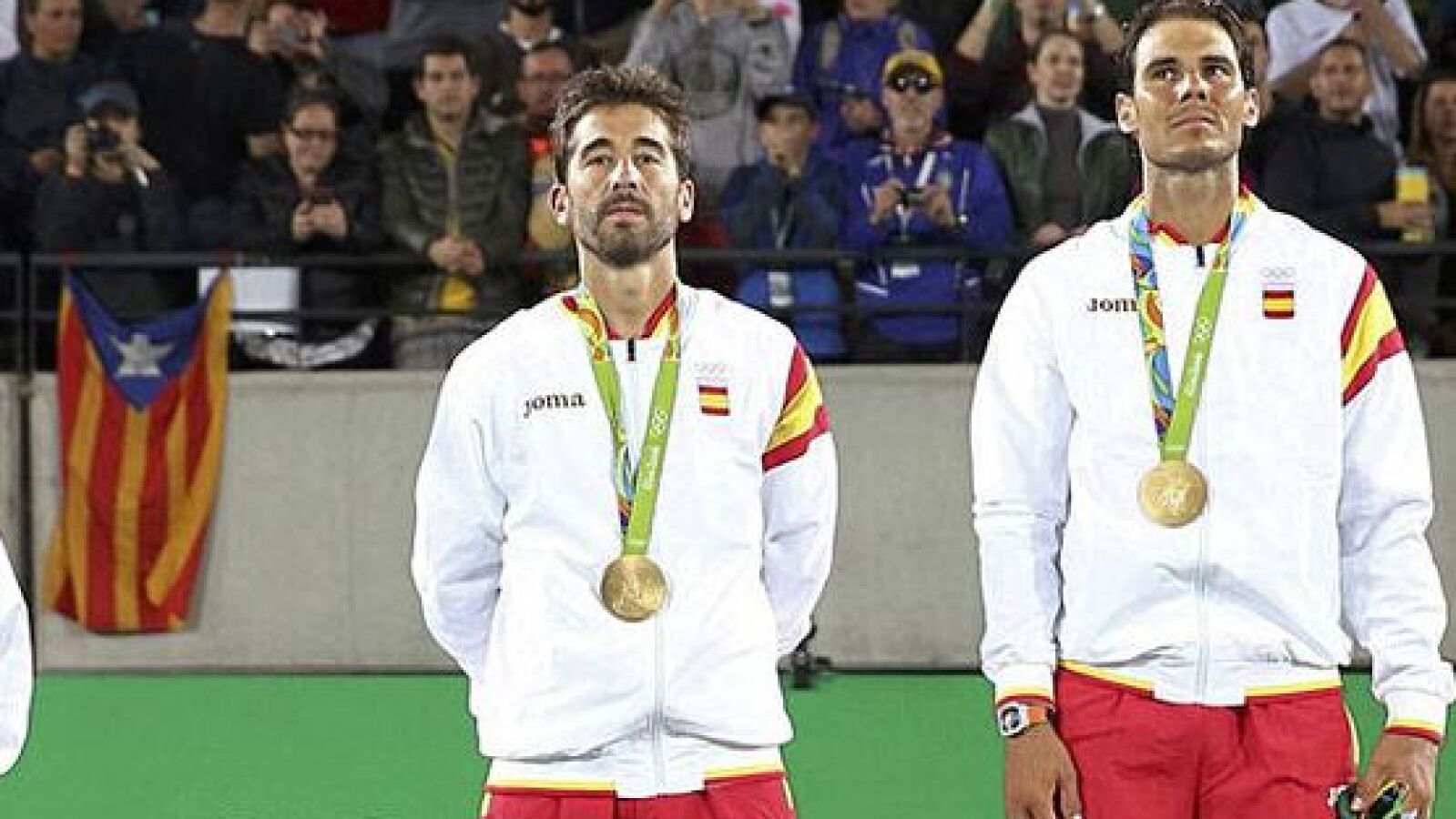 Rafa Nadal y Marca López acaban de lograr un oro más para España. Era el momento de subir al podio y saborear lo que habían ganado en la final de dobles de los Juegos Olímpicos de Río. De camino al podio, el balear, poco antes de subirse para recibir la medalla y escuchar el himno de España, miró a la grada y vio algo que no le gustó en absoluto.
