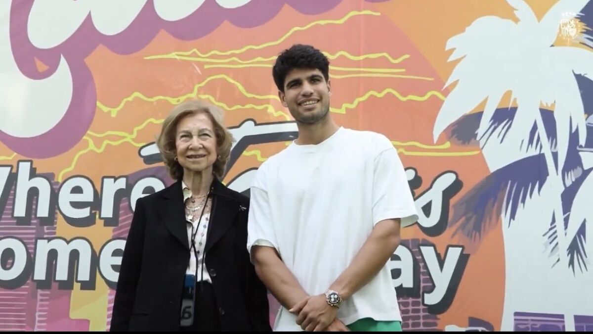 La reina Sofía se dejó ver en las instalaciones del Masters 1.000 de Miami (Estados Unidos), donde saludó a Carlos Alcaraz después de su entrenamiento y a Rafael Jódar, que es la primera raqueta española en la tercera ronda del torneo de Florida.