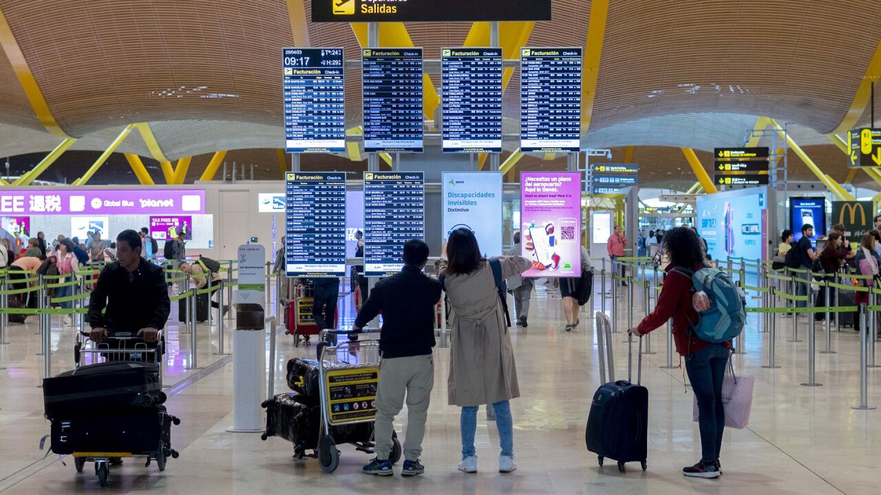 El aeropuerto de Madrid-Barajas lideró el volumen de llegadas con 24,4 millones, seguido por Barcelona-El Prat (20,3 millones) y Málaga (10,3 millones)