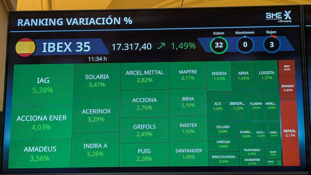 El Ibex 35 ha cerrado la sesión con avances cercanos al 3%, en una jornada claramente positiva para los mercados bursátiles. Las bolsas asiáticas ya habían registrado importantes subidas previamente, lo que ha impulsado también a los índices europeos y a Wall Street. Además, las declaraciones realizadas anoche por Donald Trump, en las que aseguró que el final de la guerra podría llegar pronto, han contribuido a mejorar el ánimo de los inversores.
