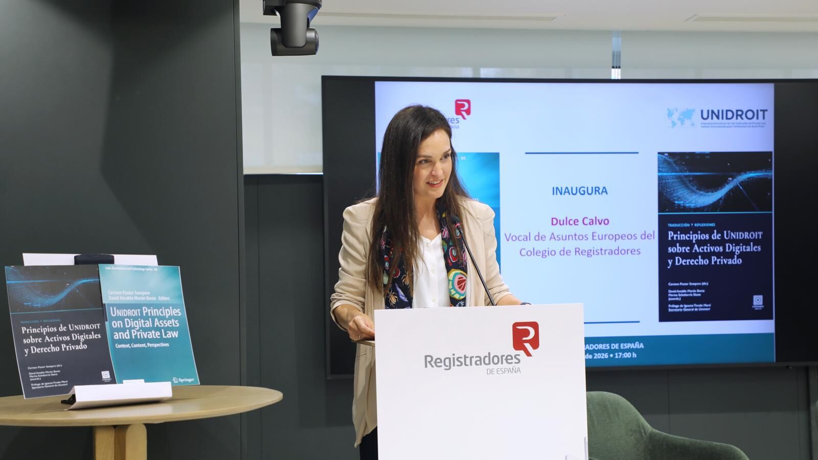 La Vocal de Asuntos Europeos del Colegio de Registradores, Dulce Calvo González-Vallinas ha inaugurado hoy en la sede del Colegio de Registradores una Jornada dedicada a los activos digitales y a los Principios de UNIDROIT. Este organismo, el Instituto Internacional para la Unificación del Derecho Privado, es una organización intergubernamental dedicada a armonizar y unificar el derecho privado internacional.