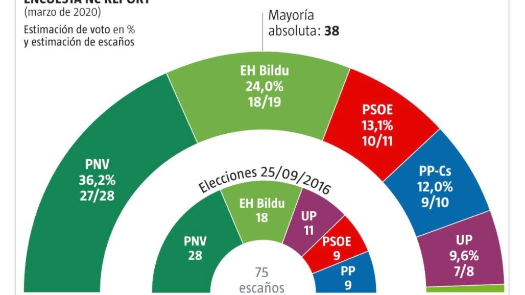 Según la encuesta, sin embargo PNV y PSOE podrían sumar los codiciados 38 escaños ya que el PNV mantendría sus 28 (o a lo más perdería uno y se quedaría con 27) y el PSE-EE tendría 10/11, es decir, aun en el supuesto caso que ambos partidos lograrán el número más bajo de sus respectivas horquillas la suma de 37 estaría garantizada y, por lo tanto, una victoria en segunda votación como ocurrió en 2016 ya que es impensable que PP (o incluso Vox) vote a favor de la candidatura de Bildu.