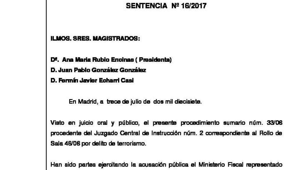 En la sentencia, la sección segunda de la Sala de lo Penal da por probado que, en la noche del 24 al 25 de mayo de 2005, ambos acusados se desplazaron a la localidad madrileña de El Escorial para robar un vehículo con el fin de colocarle un explosivo y cometer un atentado en Madrid.