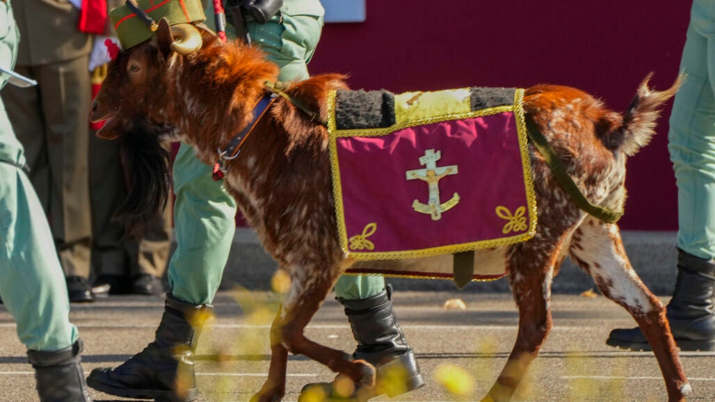 La protagonista de hoy, el chivo Pacoli, recorría kilómetro y medio de la capital junto a la quinta agrupación de las tropas de la Legión en Ceuta y con su característica cadencia de 160 pasos por minuto. Lo hacía, además, luciendo, en esta ocasión, un manto bordado con el emblema de la unidad y un tradicional gorro legionario en la cabeza.