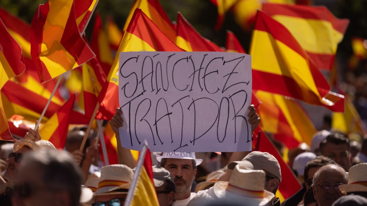Era una manifestación sin siglas, por deseo expreso del PP, pero que tenía el objetivo de que otras formaciones se unieran. No fue así porque Vox pidió a sus dirigentes y militantes que no secundaran la concentración de este domingo en Madrid bajo el lema de "Mafia o Democracia". El PP lleva toda la semana insistiendo en la necesidad de aglutinar a una mayoría -independientemente de su ideología- con el objetivo de visibilizar su rechazo al Gobierno del PSOE, cercado esta semana, por el caso de la "fontanera" socialista.