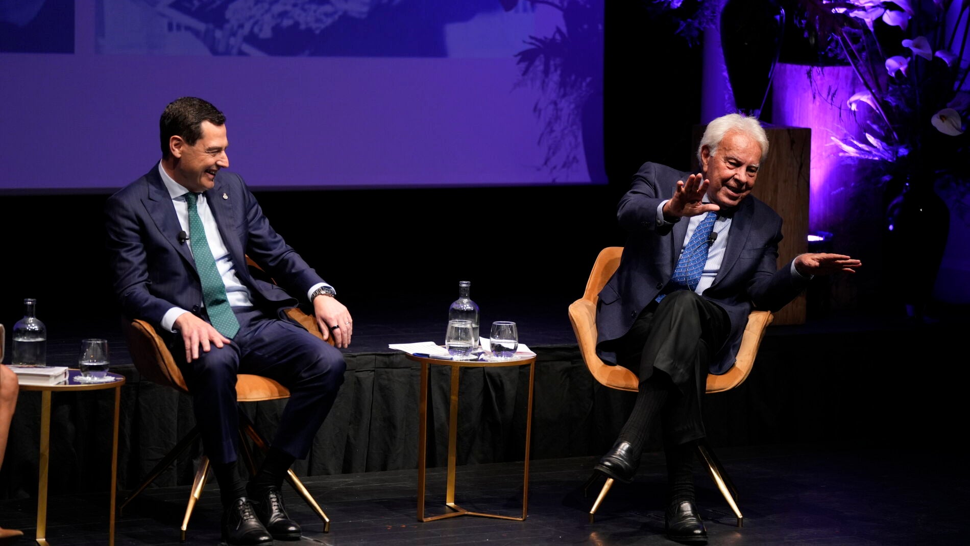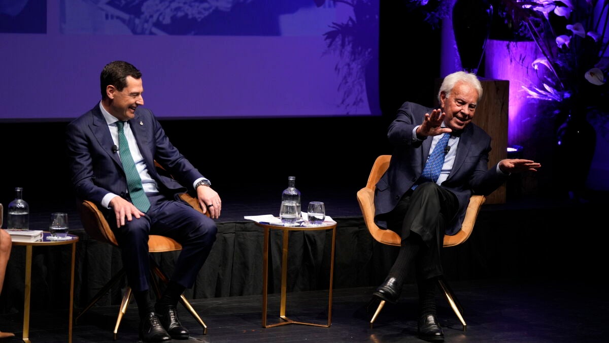 La anécdota la protagonizó Cayetano Martínez de Irujo, que en la presentación de la mesa redonda, definió a Felipe González como el mejor presidente de la historia de España y auguró que, como le ha dicho en varias ocasiones, Juanma Moreno será «el Felipe González de nuestro tiempo».