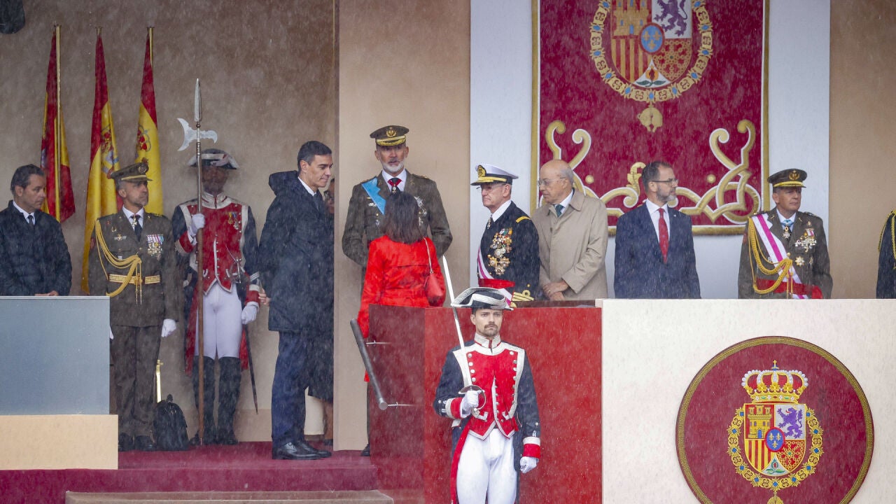 La intensa lluvia ha provocado momentos incómodos en la tribuna, obligando a los Reyes y la Princesa Leonor a retroceder