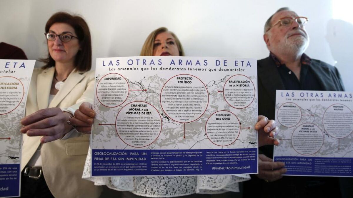 Numerosas asociaciones de víctimas del terrorismo han rubricado un comunicado en el que exigen "la entrega total de todas las armas y la disolución incondicional e inmediata de una organización terrorista que ha asesinado a más de ochocientas personas inocentes a lo largo de cincuenta años".