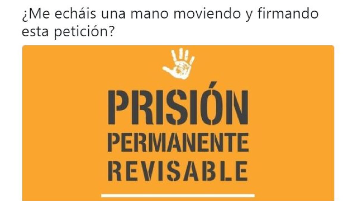 Es precisamente la madre de estas niñas, Rocío Viétez, quien ha abierto una petición en Change.org pidiendo a los partidos políticos que no deroguen la medida. Una petición que ha sido secundada por la madre y hermana de Diana Quer y que a día de hoy supera las 300.000 firmas.