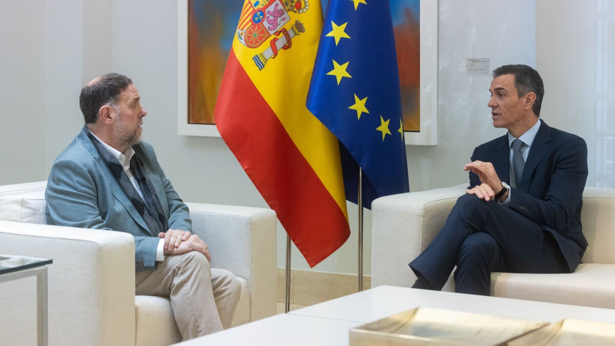 Sánchez retrata a Junqueras ante la bandera de España en su reunión de la Moncloa