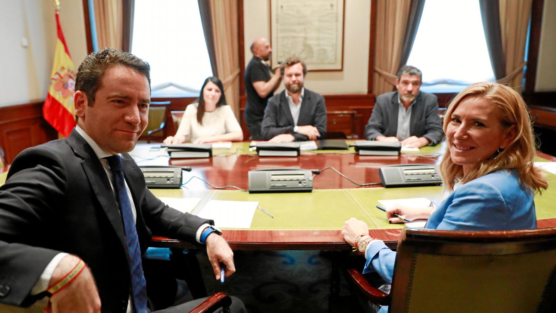 Algo más de dos horas duró esa reunión en el Congreso, que sirvió para abrir las negociaciones programáticas. De momento, más allá de la escenificación mediática por parte de Vox, se está siguiendo el guión del acuerdo andaluz. A pesar de que en los primeros tanteos el partido de Santiago Abascal ha sostenido que esta vez no pactará si no hay mesa a tres, que no la va a haber, y si no se les permite entrar en los gobiernos.