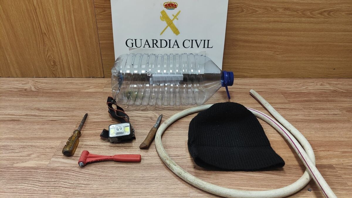 Además de los robos en vehículos, el detenido también está relacionado con dos hurtos de gasoil, utilizando una manguera y una garrafa de plástico para repostar los coches robados.