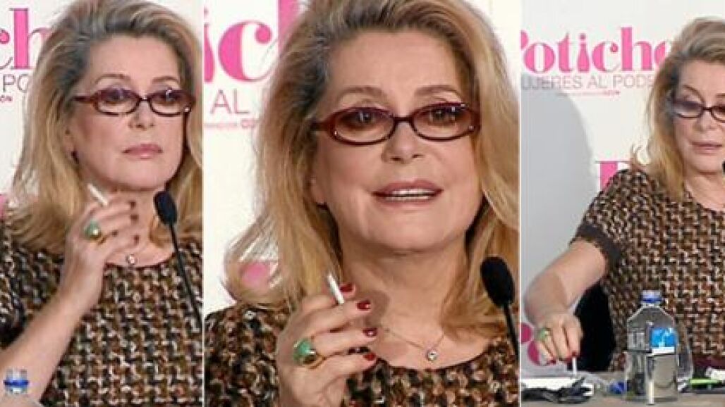 La actriz burla la ley antitabaco durante la rueda de prensa en Madrid para presentar su próximo estreno, «Potiche», y contestó airada cuando fue amonestada por ello