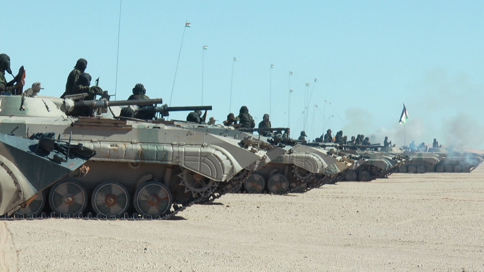 El Parte de Guerra N-12 del Ministerio de Defensa Nacional, RASD (siglas de la denominada República Árabe Saharaui Democrática) describe “doce días de bombardeos y ataques a las guarniciones de las fuerzas enemigas”, en concreto “a lo largo del muro”. Confirmar lo que está realmente ocurriendo en esta región del norte de África es casi tan difícil como saber con qué poder militar cuentan las fuerzas saharauis. El Museo del Ejército de Liberación Popular, que se encuentra en Rabouni (población de los campos de refugiados de Tinduf desde donde opera el denominado gobierno de la RASD), expone uniformes, vehículos y armamento (como piezas de artillería, morteros y lanzagranadas) empleados durante la guerra que se libró en los primeros años contra Marruecos y Mauritania (en este segundo caso, hasta que en 1979 Nuakchot renunció al territorio que reclamaba, y que también se anexionó entonces Marruecos).