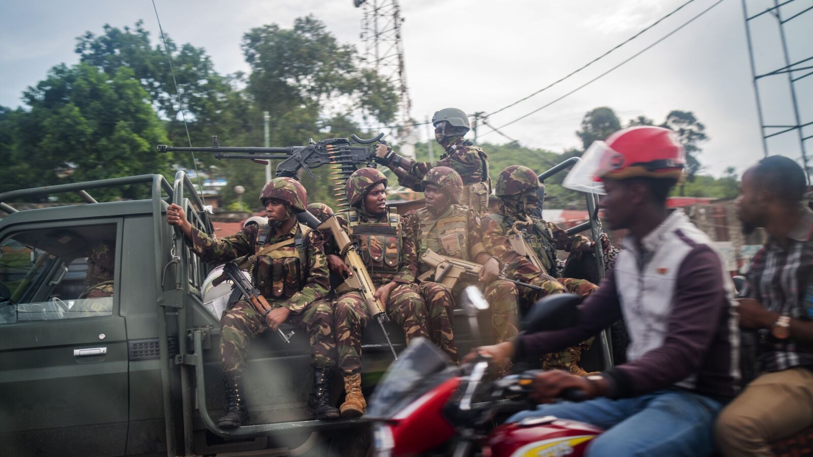 Goma es además una ciudad sitiada. A menos de cuarenta kilómetros, los rebeldes del M23 asesinan a decenas de civiles cada semana, mientras buscan alcanzar la ciudad y apropiarse de ella, tal y como ocurrió durante unos meses de 2012. Goma es hoy una ciudad militarizada en su máxima expresión. Tropas de cascos azules de MONUSCO (la misión de Naciones Unidas en el este de RDC) patrullan el barro en compañía de efectivos congoleños y miembros integrados en la reciente misión enviada por la Comunidad Africana Oriental (CAO) para frenar un desastre en ciernes, y los niños que arrastran los pies les miran pasar con el ceño fruncido, sin sonreír. Hace más de 20 años que la situación en Goma es insostenible y ya quedaron atrás los días donde los niños sonreían y soñaban con ser soldados cuando crecieran.