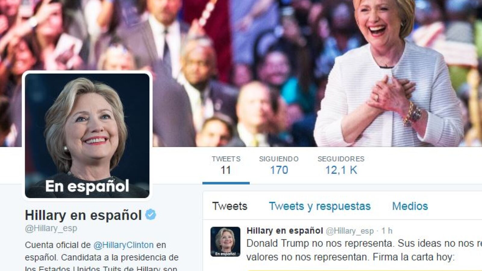 Con el nuevo perfil @Hillary_esp, la candidata hará sus publicaciones en la plataforma web también en español, para asegurar que el mensaje esté "accesible para todas las comunidades del país", en particular para los hispanos, según el comunicado.