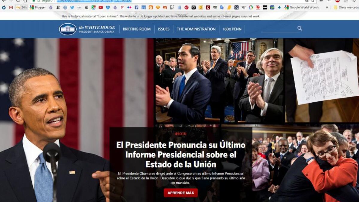 Curiosamente, en esta página oficial de la Casa Blanca se ha mantenido una parte dedicada al presidente Barack Obama y a su Gobierno bajo el nombre Obama White House y, aquí sí, se mantiene una versión en español con toda la información sobre el expresidente y su gabinete, así como sus logros, su familia... en nuestro idioma. También se incluye una sección dedicada a la comunidad latina.