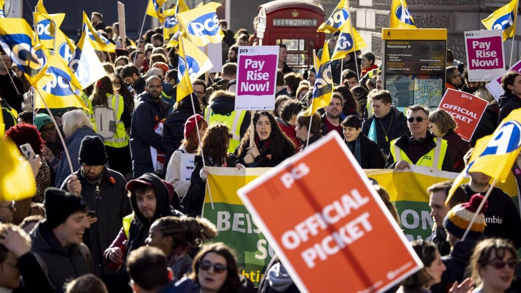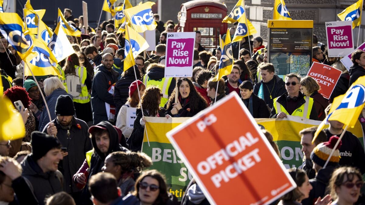 En Reino Unido las huelgas generales son prácticamente imposibles por las normativas que comenzaron a implantarse con Margaret Thatcher. Pero desde luego que las «acciones coordinadas» este miércoles por los sindicatos dejaron una imagen muy similar. Más de 500.000 trabajadores salieron a la calle en la mayor protesta laboral registrada en el país en la última década, debilitando aún más a un Gobierno conservador agotado por guerras internas y una economía en declive. A los paros masivos se sumaron los funcionarios de departamentos gubernamentales, puertos, aeropuertos y centros de exámenes de conducir, así como el personal de 150 universidades y conductores de trenes. Aunque los grandes protagonistas fueron los más de 300.000 profesores.