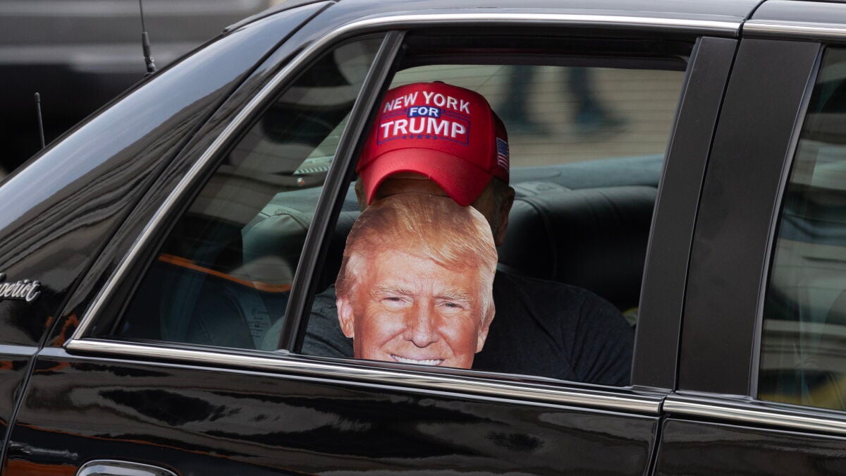 "Vine para verlo con mis propios ojos, en vez de verlo a través de los medios de comunicación falsos. Espero que Trump suba hoy en las encuestas gracias a la imputación", dice desde dentro del coche a las decenas de reporteros que se acercan a tomarle fotos.