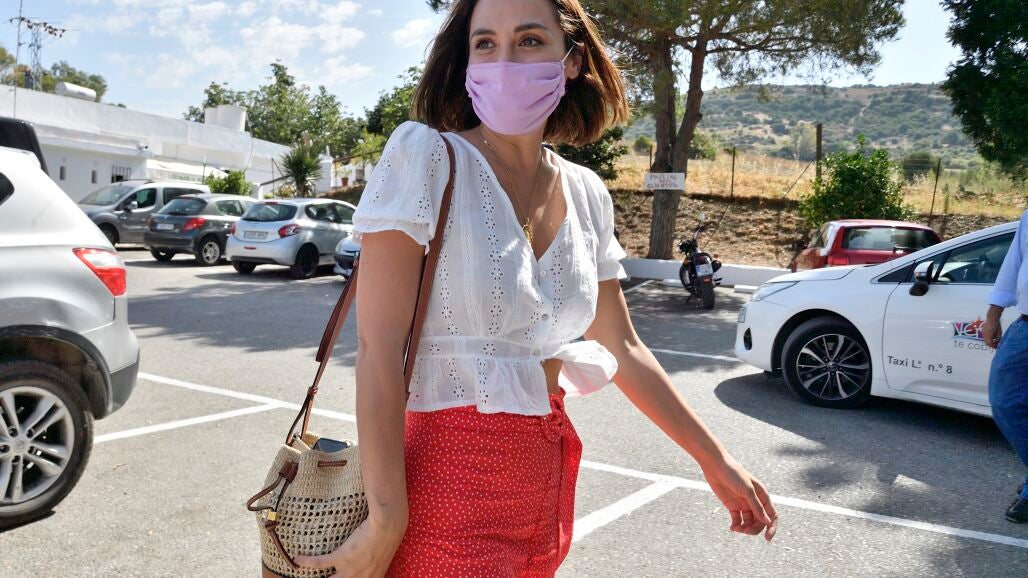 La falda roja con lunares blancos que luce Tamara de camino a sus vacaciones en Cádiz no puede ser más bonita, con ese aire español por el estampado de lunares tan atemporal y ese toque chic parisino. Un diseño de tiro alto con cinturón, detalle de falsos botones y bajo acabado en volantes con abertura delantera. ¿Su precio? 25,95€ y está disponible de la XS a la L.
