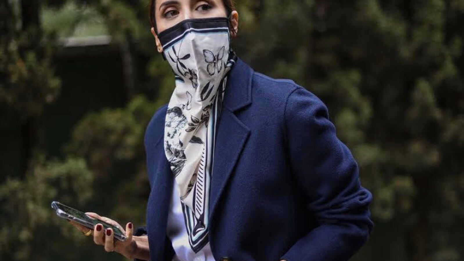 Tamara Falcó se suma a la tendencia del pañuelo-mascarilla (en su caso ‘made in spain’) que ya habíamos visto a Olivia Palermo