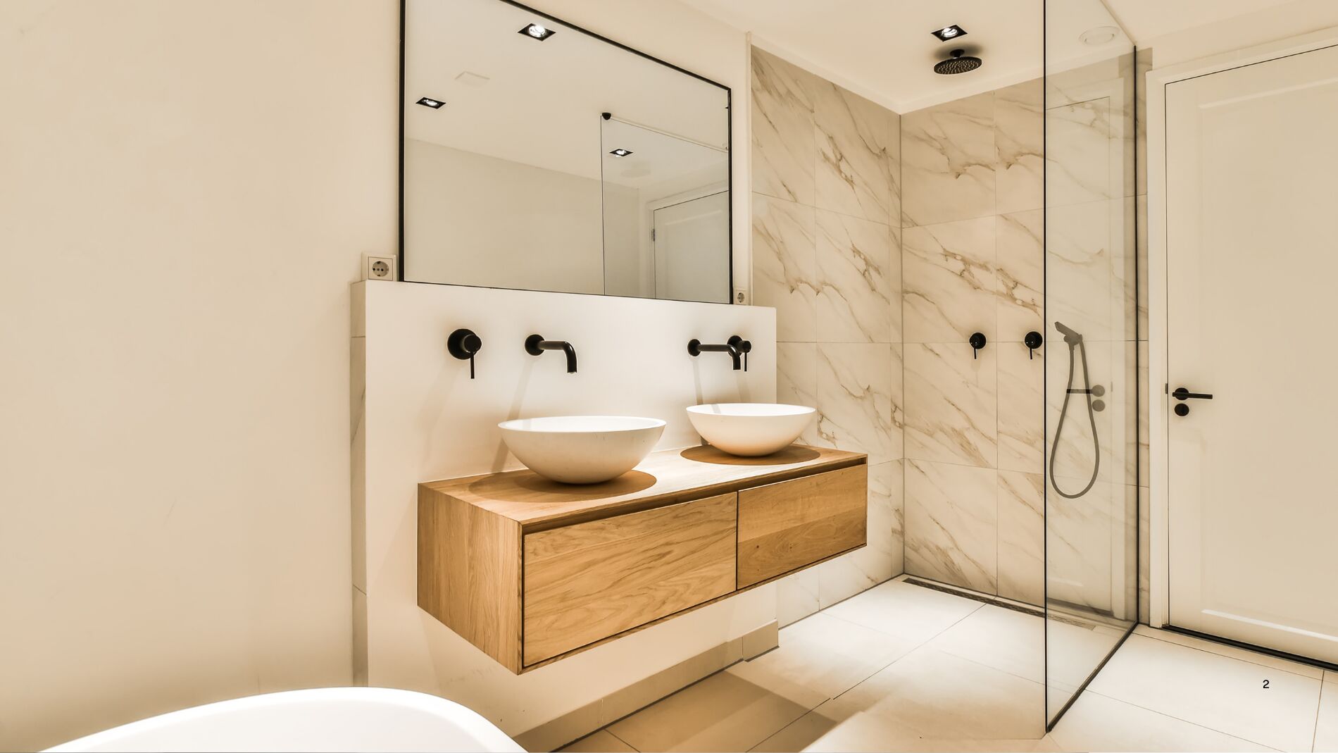 Además del microcemento y la madera, la piedra natural sigue destacando, especialmente en tonos claros para encimeras, alrededor de la bañera o en las paredes.