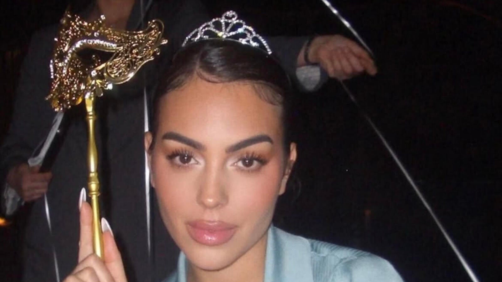 Georgina Rodríguez se viste de princesa con vestido de punto azul (y tiara) para celebrar su cumpleaños
