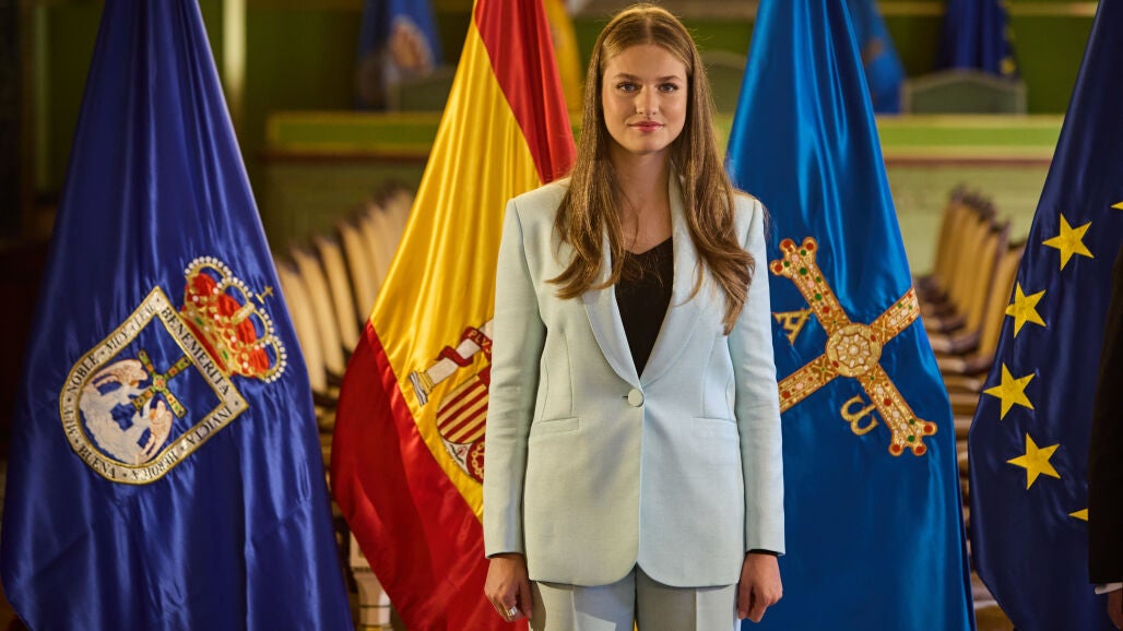 La Princesa Leonor apuesta por un traje azul (muy Letizia) y sandalias de tacón sensato para su primer acto en solitario en Oviedo