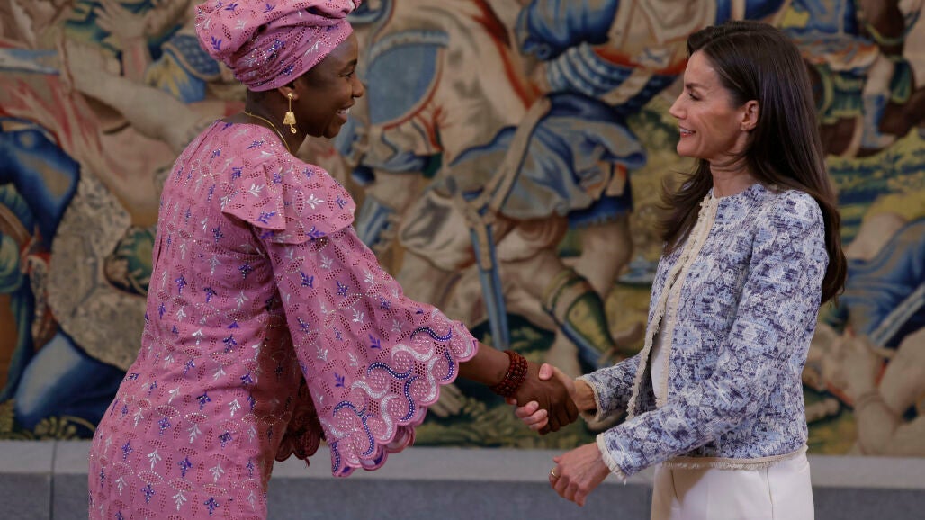 En cuanto a los complementos, la Reina ha optado por la discreción. Zapatos en tono claro, joyas mínimas y su habitual maquillaje natural, con el foco puesto en la piel luminosa y los tonos suaves. Todo suma sin restar protagonismo a la verdadera estrella del look.