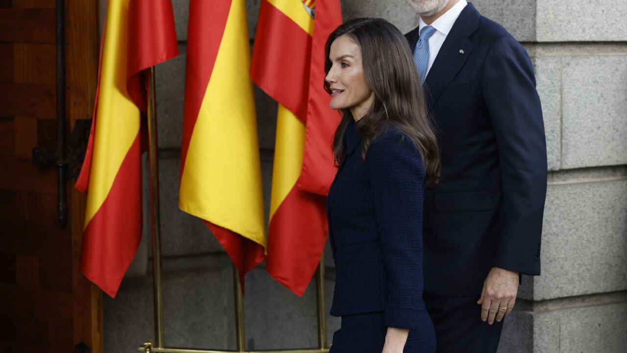 El dos piezas, compuesto por chaqueta estructurada y falda lápiz midi, pertenece a ese armario estratégico que la Reina activa en momentos clave. Lo vimos por primera vez en una cita diplomática de máximo nivel: el almuerzo en honor a Abdel Fattah Al Sisi. Entonces ya fue definido como un traje de inspiración ‘Grace Kelly’, por su silueta clásica, su tejido con textura tipo tweed y ese azul noche que evoca elegancia sin estridencias.